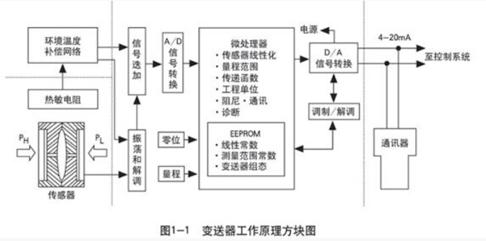 2021-09-08 06:41:25本文關鍵字:壓力變送器 壓力變送器就是能感受壓力并轉換成可用輸出信號的傳感器。當壓力信號作用于傳感器時,壓力傳感器將壓力信號轉換成電信號,經差分放大和輸出放大器放大,然后經V/A電壓電流轉換成與被測介質的液位壓力成線性對應關系的4-20mA標準電流輸出信號。 壓力變送器工作原理方塊圖: